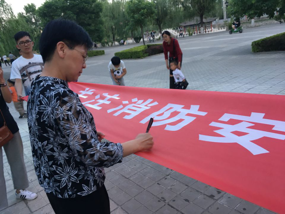 活动最后,保卫处工作人员和公司师生在“关注消防安全 共建和谐校园”条幅上签名,号召全校师生共同关注消防安全,建设平安和谐校园。
