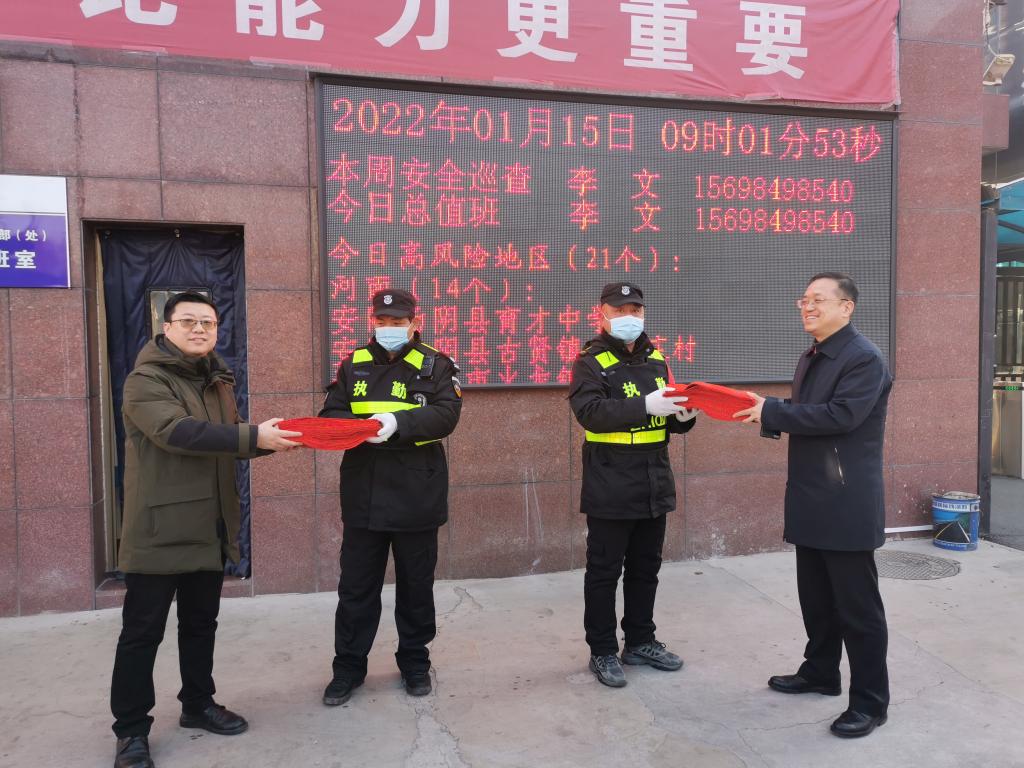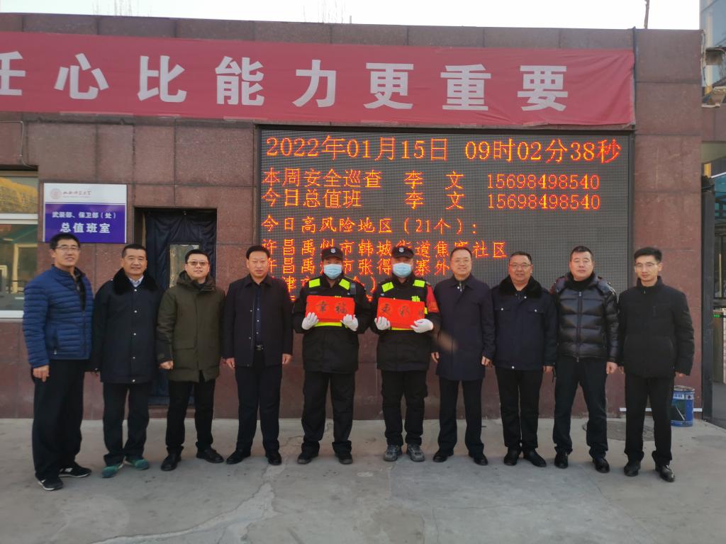 在新春佳节来临之际,公司于1月15日上午向保卫处赠送春联。公司党委常委、宣传部部长,emc易倍经理薛珠峰,副经理曹亚彬,保卫处处长王军峰出席活动。