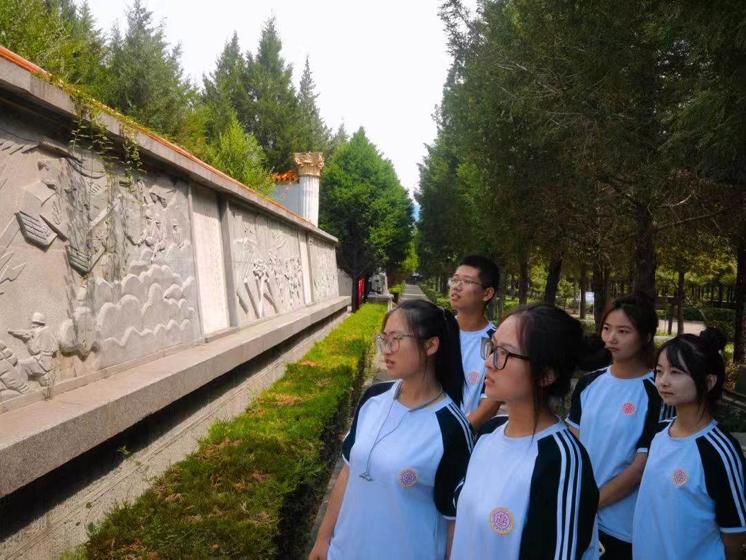 图为实践队员在黄坡烈士陵园内通过浮雕壁画了解革命先烈英勇抗战,以铁骨铮铮、以血肉之躯筑长城。在风雨如晦的年代,是革命先烈高擎艺术的火炬,义无反顾地踏上了为民族独立,人民解放而奋斗的征程。中国青年网通讯员 林哲 摄