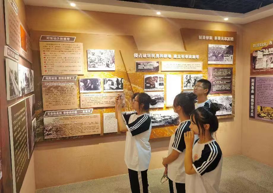 图为实践队成员认真参观学习馆内陈列的物品,仿佛接受了人生的洗礼。让我们深地感受到了现和平时代的来之不易。中国青年网通讯员 吴雨聪 摄