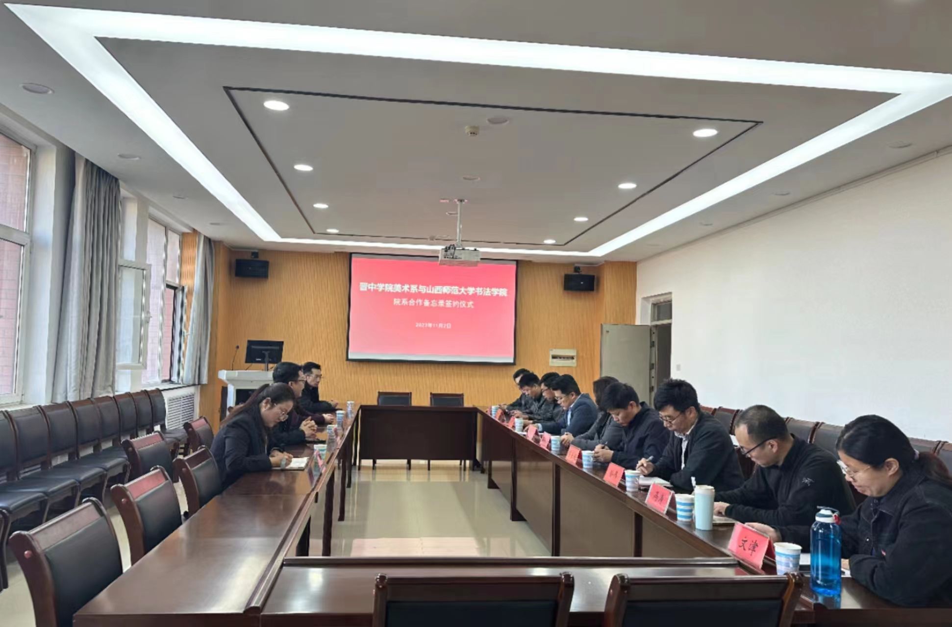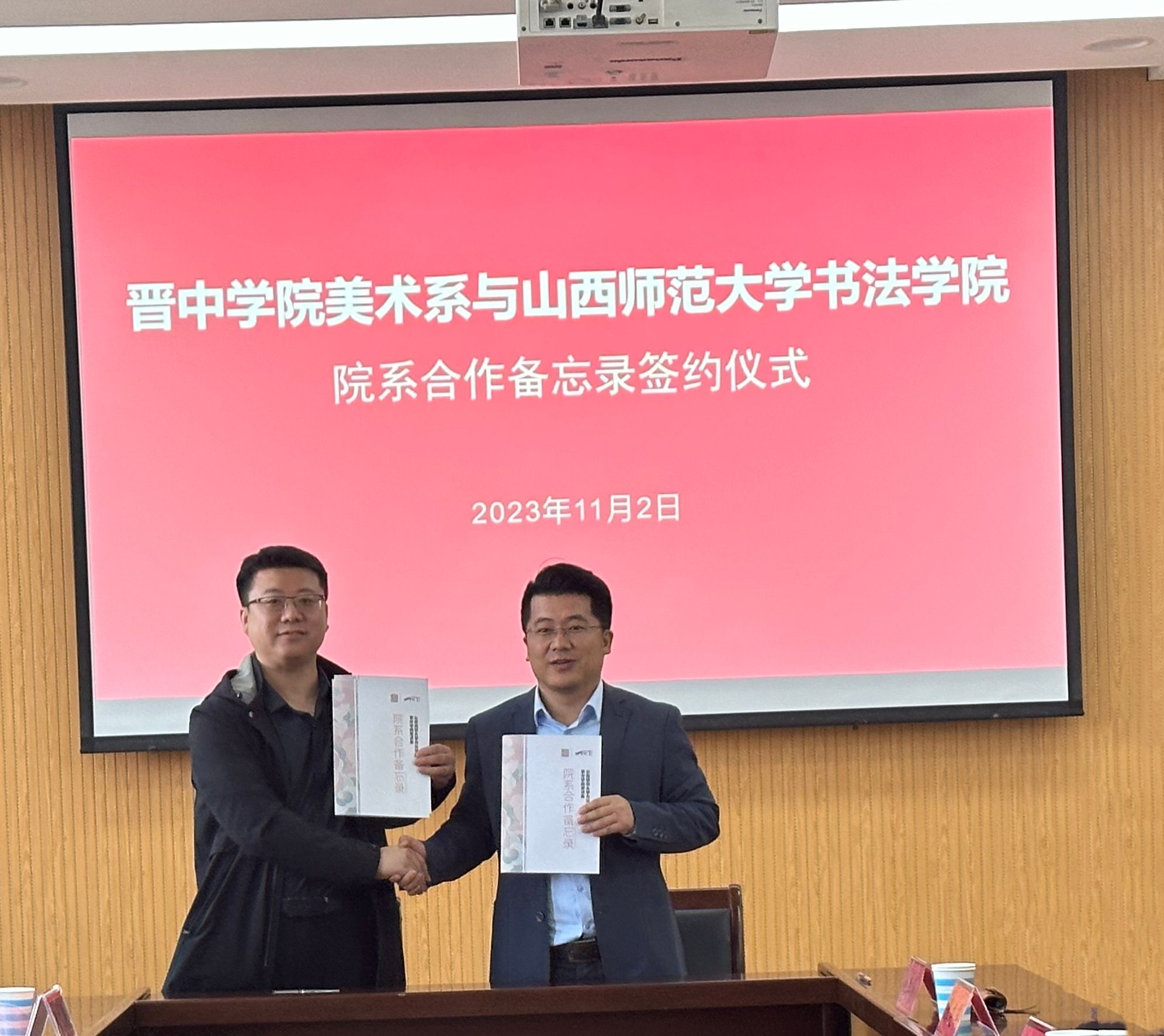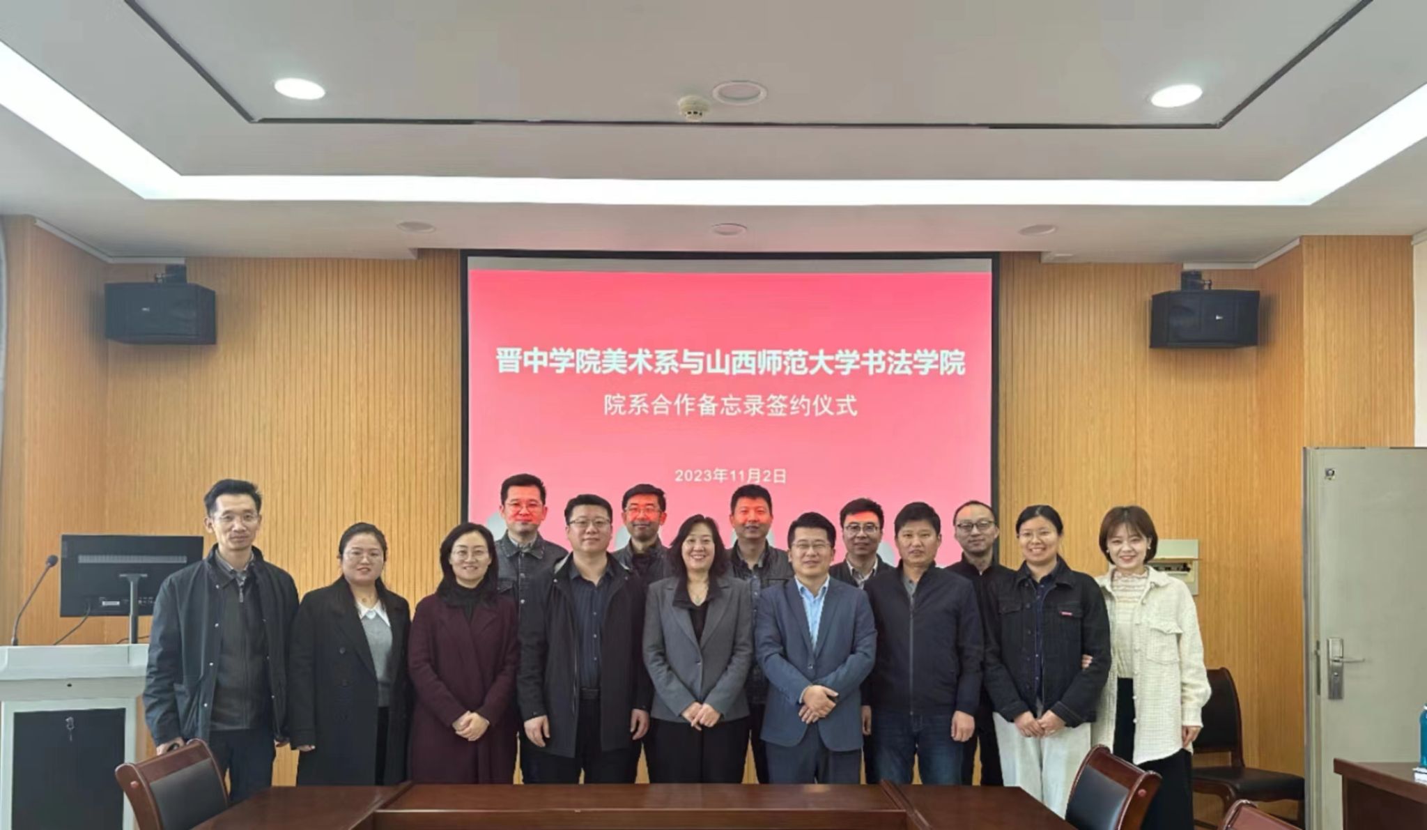 签约仪式由晋中公司美术系书法教研室主任刘卓主持。会上,曹亚彬充分肯定了晋中公司美术系的团队建设和特色专业建设成果,介绍了emc易倍“小而精、小而美、小而实”的特色建设举措及成效,并表示希望双方以此次合作为契机,在教学科研、特色建设、员工培养等方面加强交流合作,实现互利共赢、协同发展;刘小旦介绍了晋中公司美术系的发展沿革和当前团队建设现状,并对emc易倍一直以来对晋中公司美术系的指导和帮助表示感谢,希望今后双方在举办展览、课程建设、社会服务等方面协力合作,共同实现高质量内涵式发展。随后,双方签订了院系合作备忘录,并合影留念。