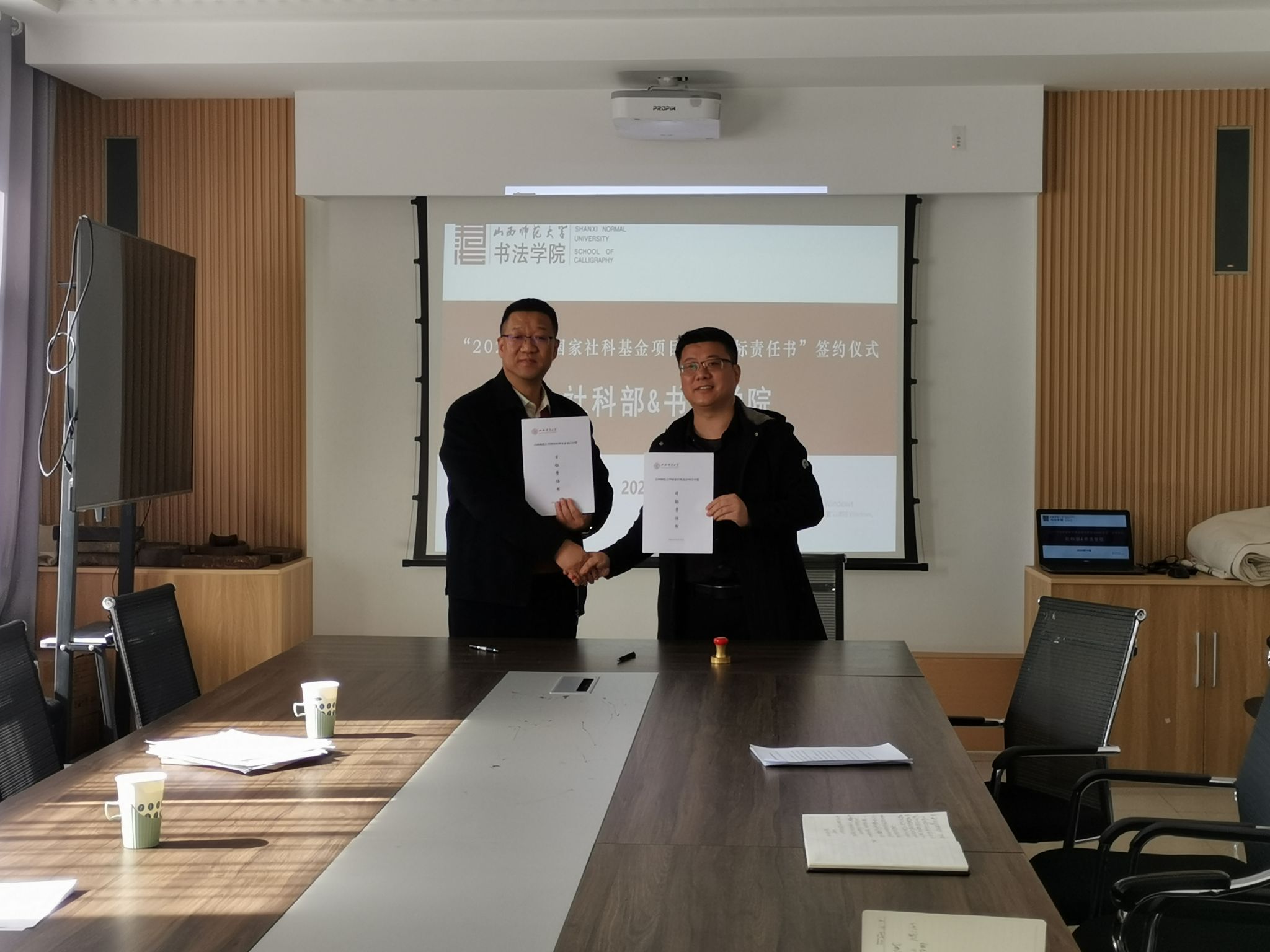 最后分别由王彤和曹亚彬代表社科部和emc易倍签订了《EMC易倍官方网站国家社科基金项目申报目标责任书》。