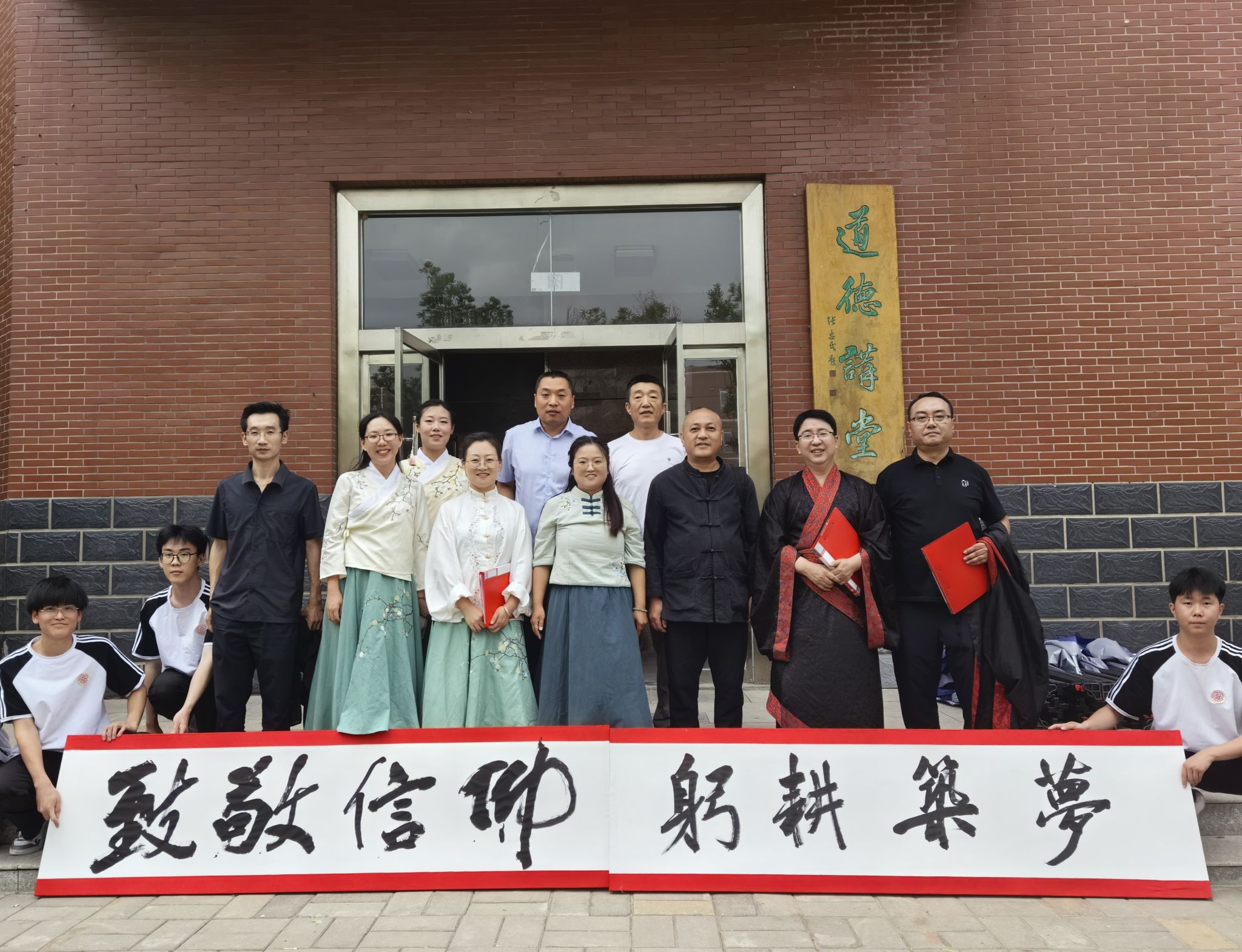 公司教师以《何以华夏 何以中国》为题进行了诵读。比赛现场,老师们的诵读声情并茂,铿锵有力,充分展现了公司师生的爱国情怀和对中华优秀传统文化的自信。伴随着老师们慷慨激昂的声音,王文清、丁俊瑞两位老师在舞台两侧挥毫泼墨,书写出本次比赛的主题“致敬信仰 躬耕筑梦”八个大字。表演获得了评委、观众的一致好评和热烈掌声。