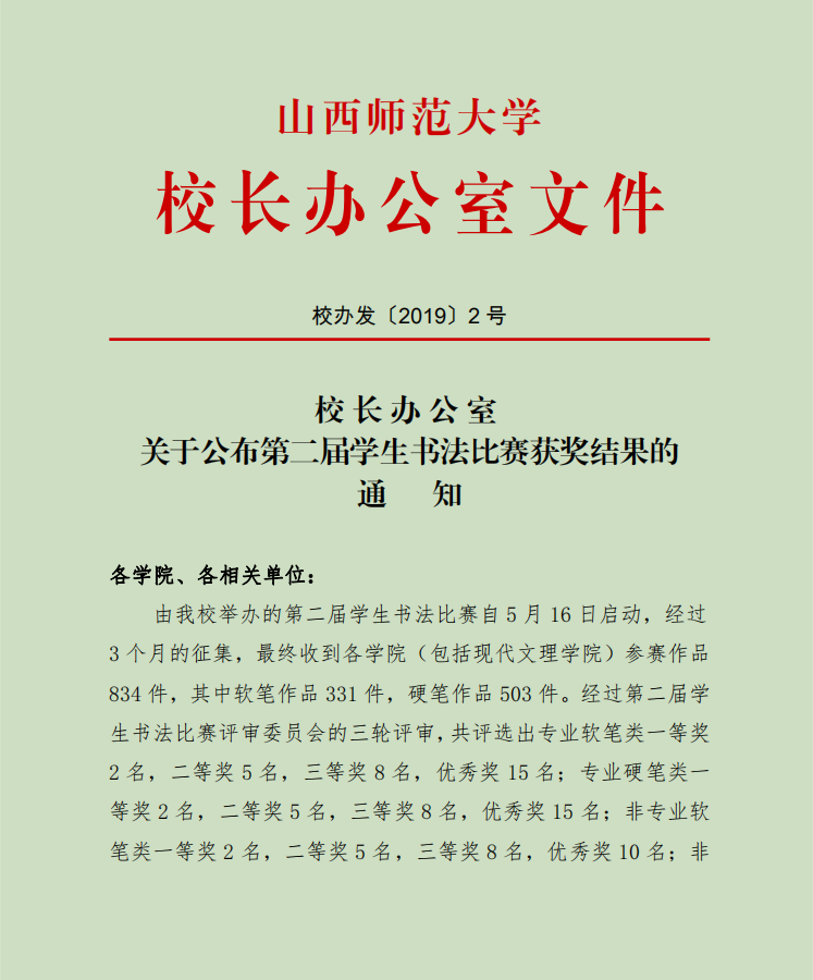 EMC易倍官方网站第二届书法比赛结果已于2019年1月9日通过校办正式文件公布,公司员工比赛成绩斐然。其中,专业组软笔比赛中获一等奖2名,二等奖4名,三等奖5名,优秀奖9名;专业组硬笔比赛中获一等奖2名,二等奖5名,三等奖8名,优秀奖10名。