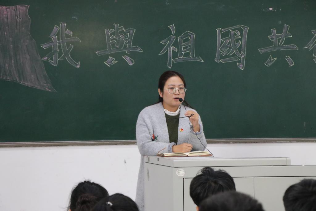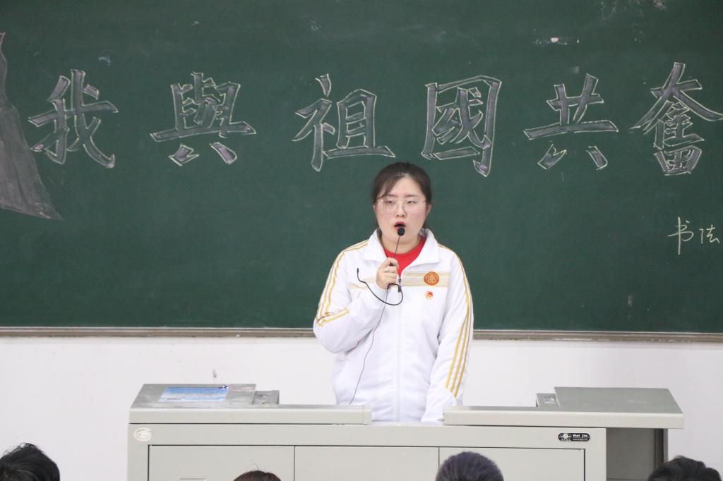 活动在慷慨激昂的国歌声中拉开序幕。活动过程中,院团委员工副书记乔宇丹为全体团员详细讲述了中国共青团团史、团旗和团徽的含义、中国共青团团员的权利和义务,以及三会两制一课制度的内容;1801班团支书樊雅菁带领全体团员高举右拳,重温入团誓词;优秀团员代表戴瑶、刘思雨进行了“我与祖国共奋进”主题演讲,展现了当代团员青年与祖国同呼吸、与时代共奋进的爱国主义情怀和昂扬精神风貌。活动最后,院团委副书记宁译锐结合革命先辈高君宇、刘胡兰的事迹为全体团员送上寄语,希望广大团员青年坚守爱国之情,恪守强国之志,提高爱国本领,实践报国之行。