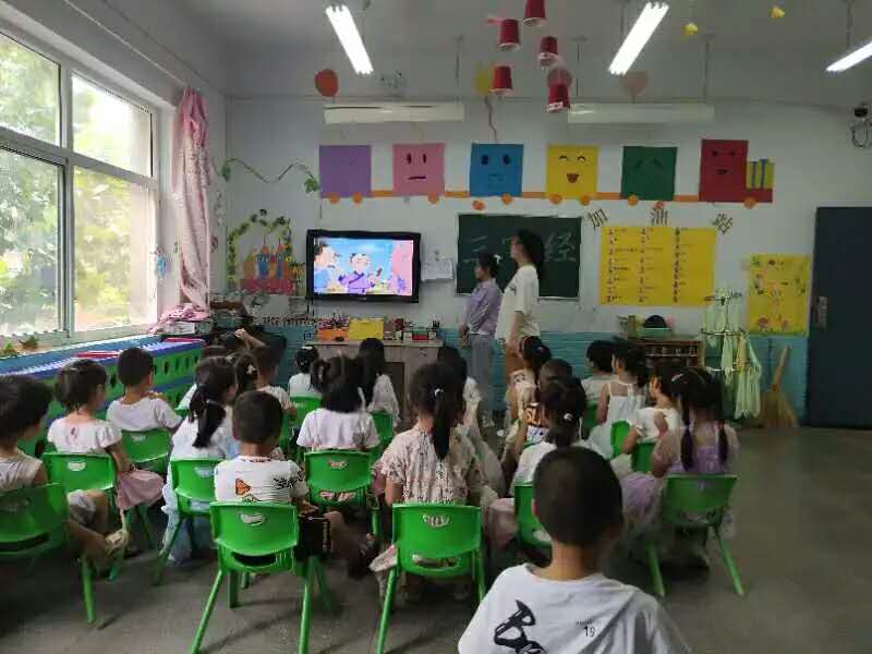 在运城王范乡中心幼儿园,实践队队员通过观看国学动画、阅读国学故事书、书写毛笔字等幼儿喜闻乐见的方式为幼儿园的孩子们讲述国学知识,带领他们感受国学文化的魅力。随后,队员们在大一班进行了“三字经”诵读活动,鼓励大一班的孩子们站到讲台上分享国学故事和自己对国学故事的理解,使孩子们通过分享的过程加深对国学故事的认识和体会,在心中埋下国学文化“兴趣”的种子。