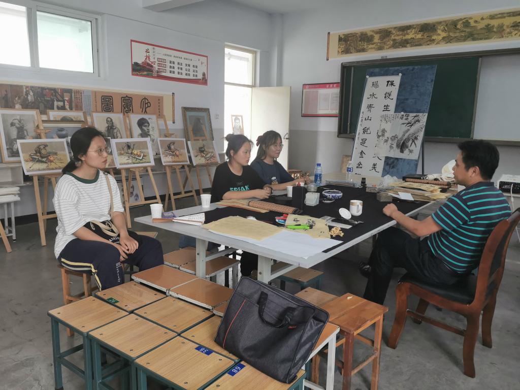 到达晋城市沁水二中后,队员们在公司美术老师的带领下参观了公司的美术教室及美术展览,并通过与老师沟通交流,对当前沁水二中美术和书法课堂发展的现状和员工的书法学习情况有了初步的了解。随后队员们深入到五个员工教室,进一步调查了解员工们学习书法的状况和他们对书法的认识。在调查交流过程中,队员们向员工们讲解了习近平总书记对于保护和弘扬中华传统文化的重视,并说明了学习书法对他们日后学习和生活的重要性,进一步增强了员工们保护和弘扬中华传统文化的意识,激发了他们学习书法的兴趣。